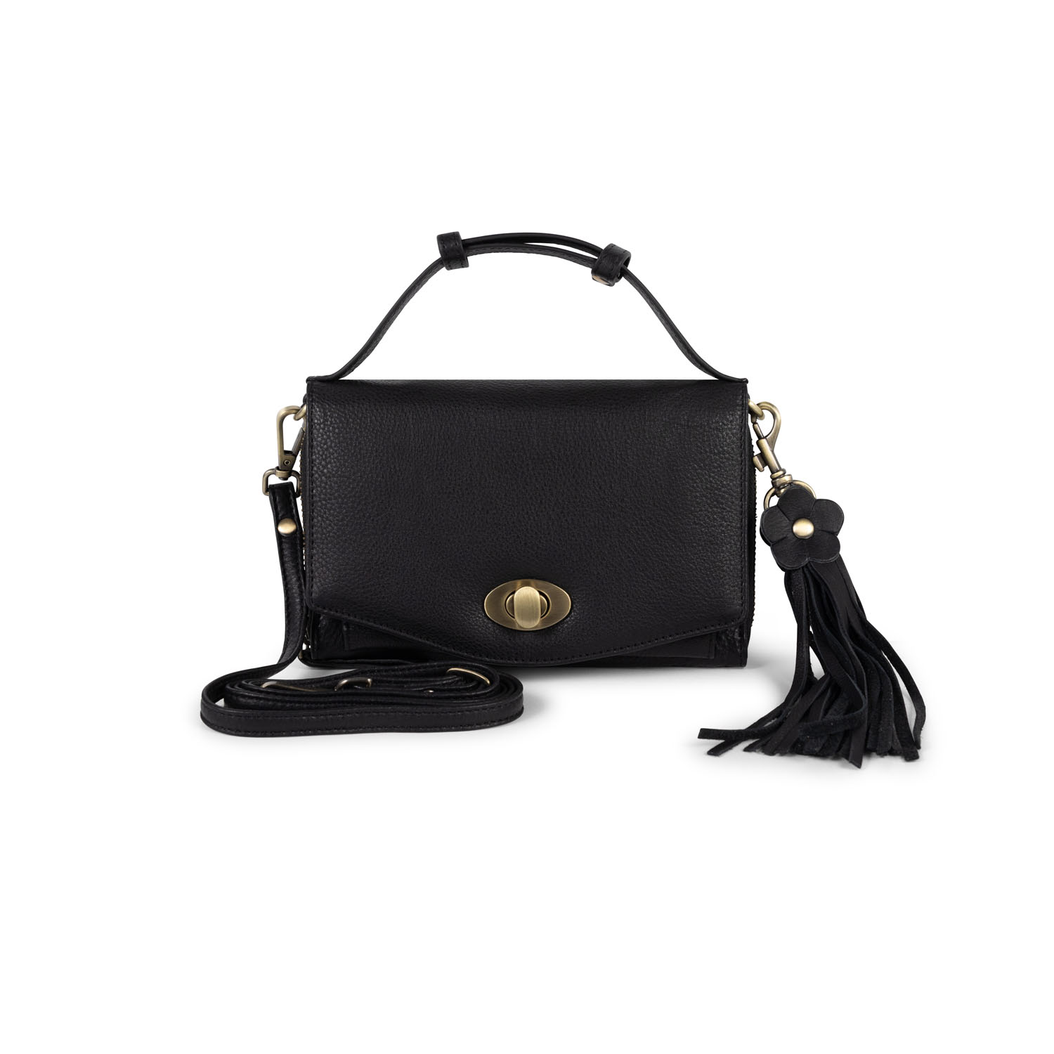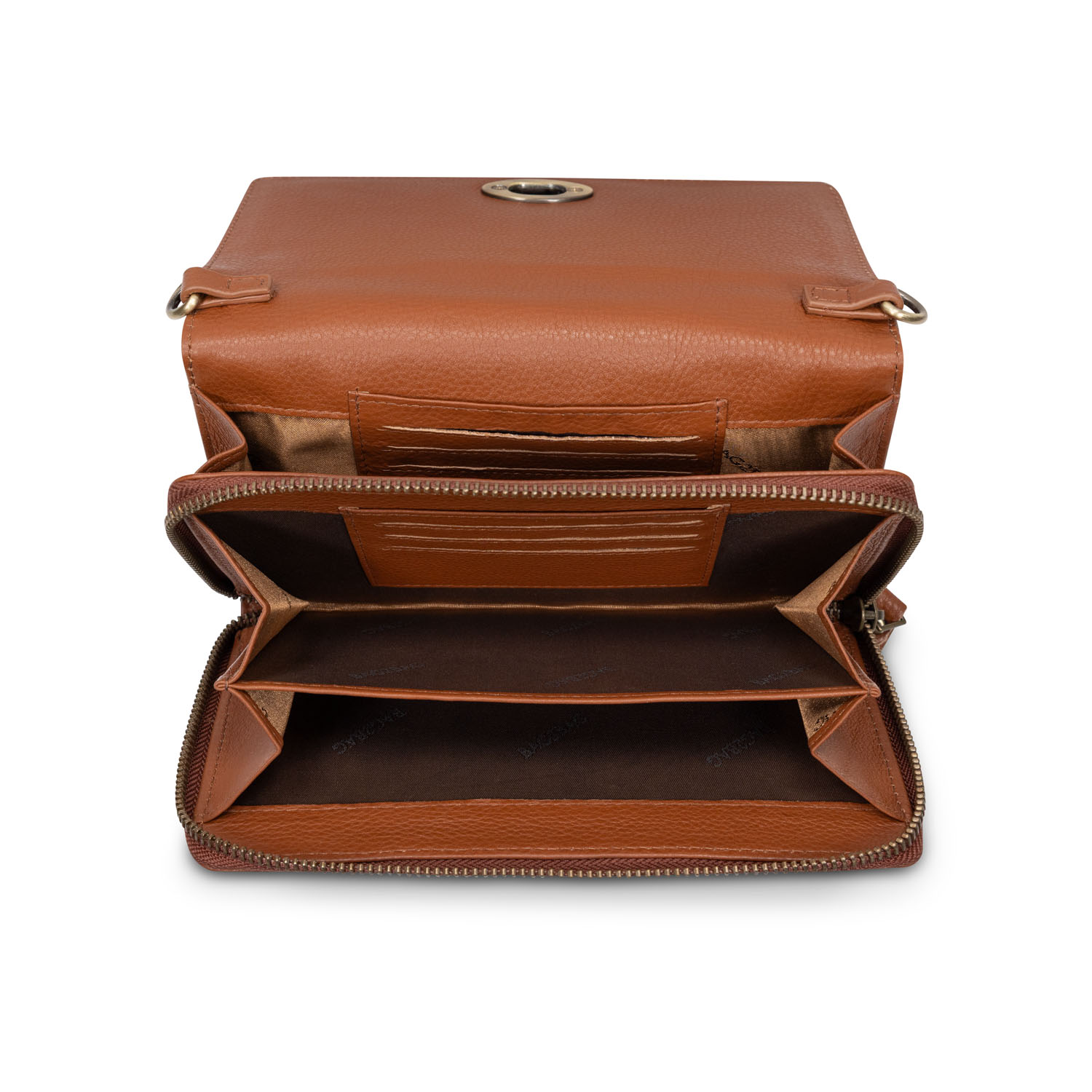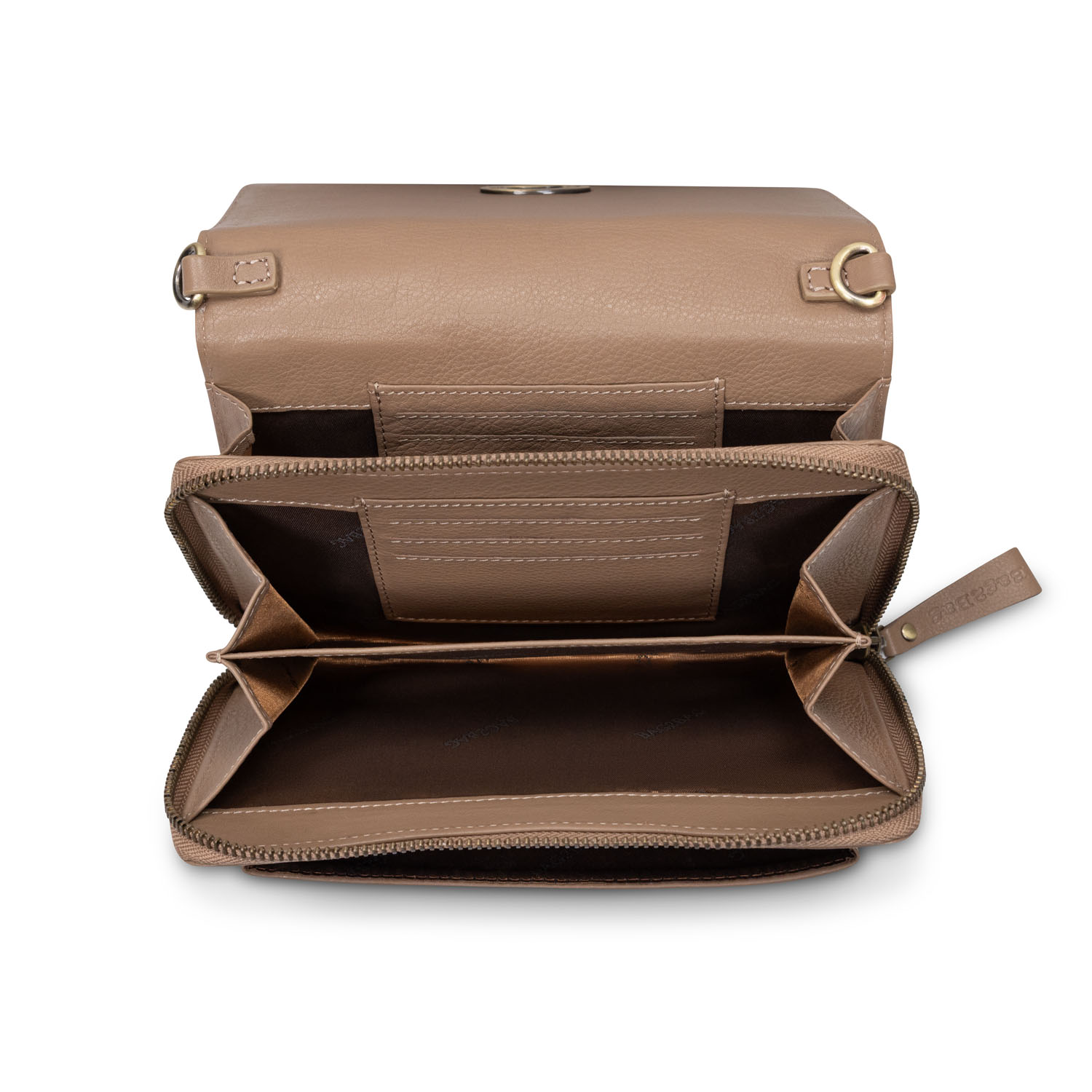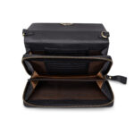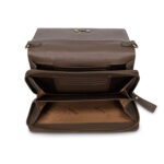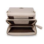 Het slanke design wordt geaccentueerd door een stijlvolle klep met draaiknopsluiting, wat de tas een luxe en tijdloos karakter geeft. Binnenin vind je een praktische indeling met meerdere vakken en ruimte voor pasjes, zodat je al je essentials georganiseerd bij je draagt.