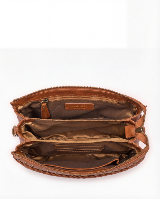 De Yale is een stoere crossbody tas met stijlvolle studs als detail. Het slimme ontwerp met meerdere vakken en ritsen maakt deze tas ideaal om je essentials georganiseerd en veilig mee te nemen.